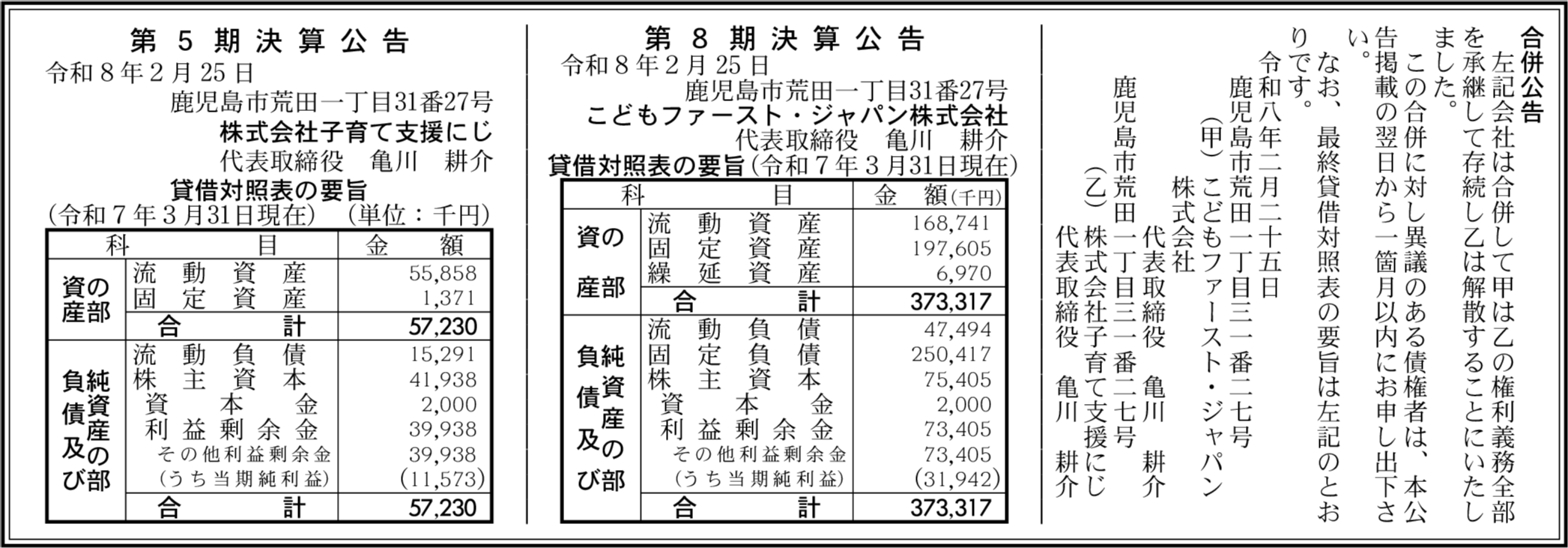株式会社子育て支援にじ 鹿児島市 【2025年3月期】 |