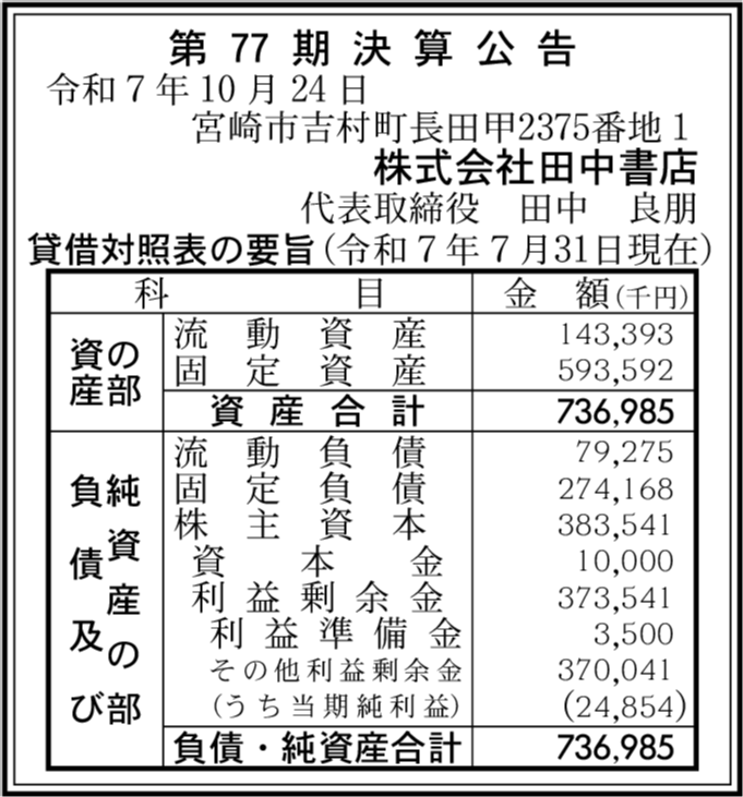| 利益剰余金 | 3億7,354万1,000円 (+7.13%) |