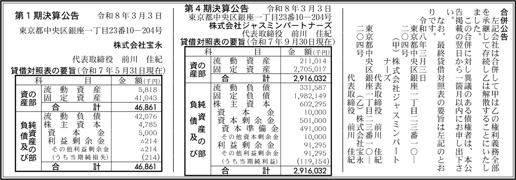 株式会社宝永 東京都中央区 【2025年5月期】 |