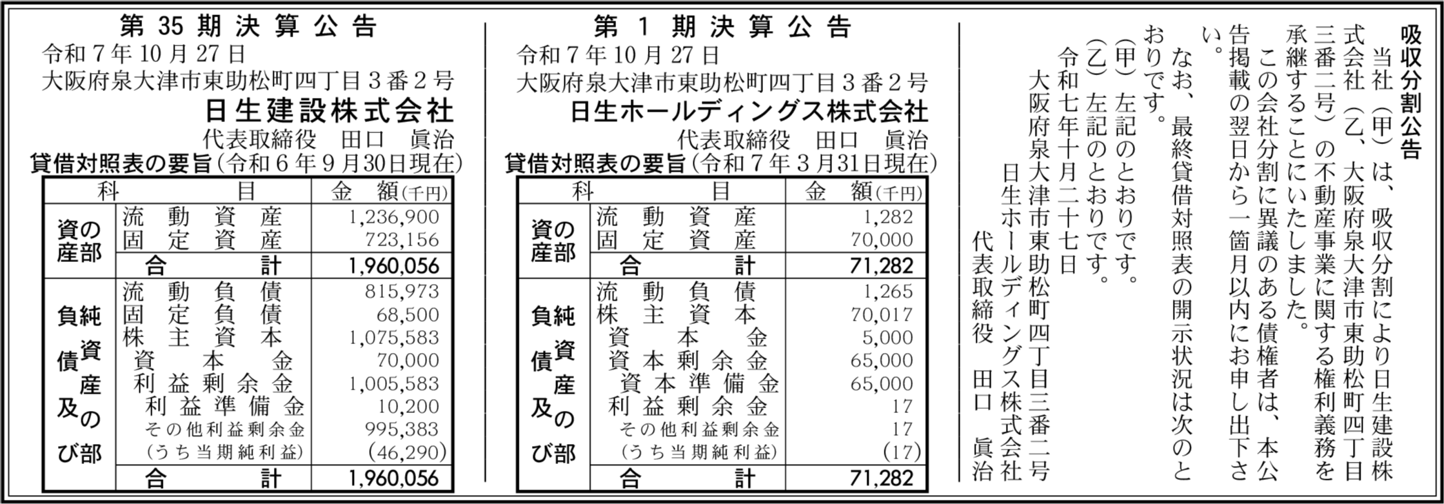 日生ホールディングス株式会社 大阪府泉大津市 【2025年3月期】 |