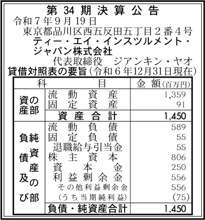 | 会社名 | ティー・エイ・インスツルメント・ジャパン株式会社 |