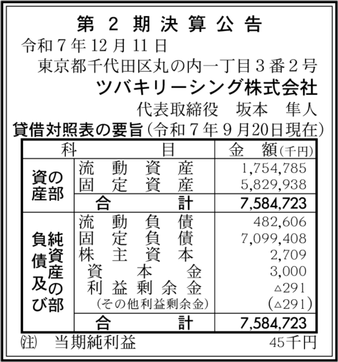 ガゼルリーシング株式会社 東京都千代田区 【2025年7月期】 |