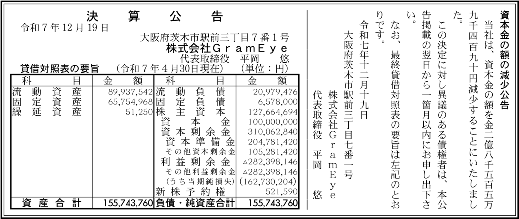 | 会社名 | 株式会社GramEye |