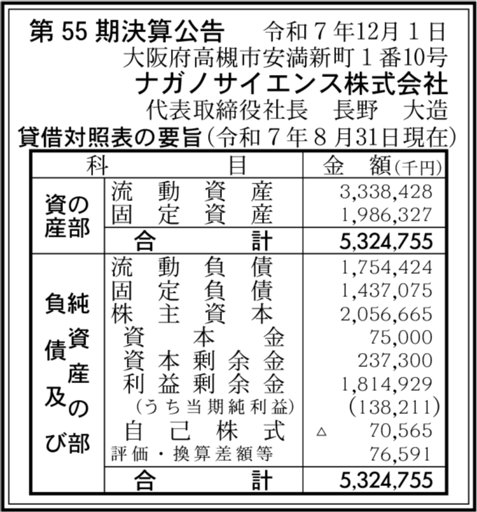 株式会社ヤマックスラボ 大阪府高槻市 【2025年8月期】 |