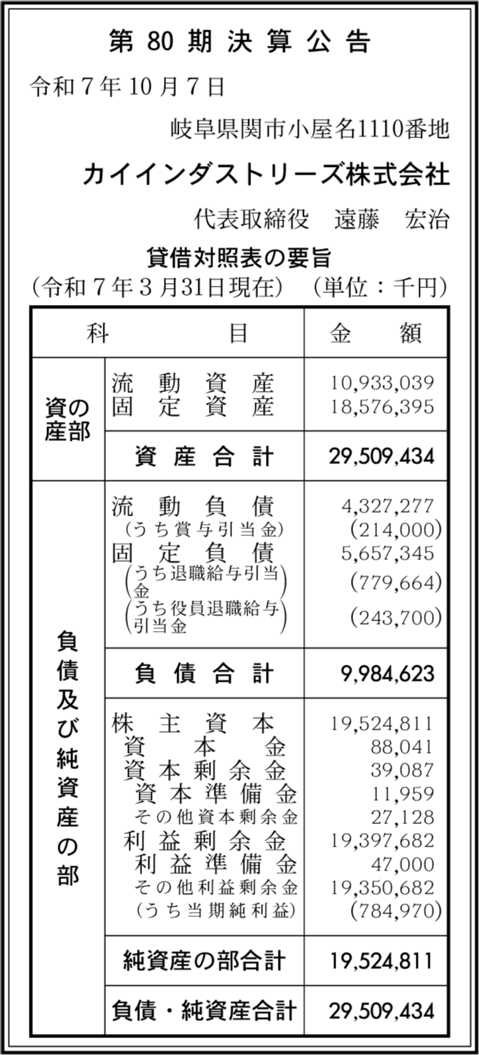 会社名 | カイインダストリーズ株式会社 |