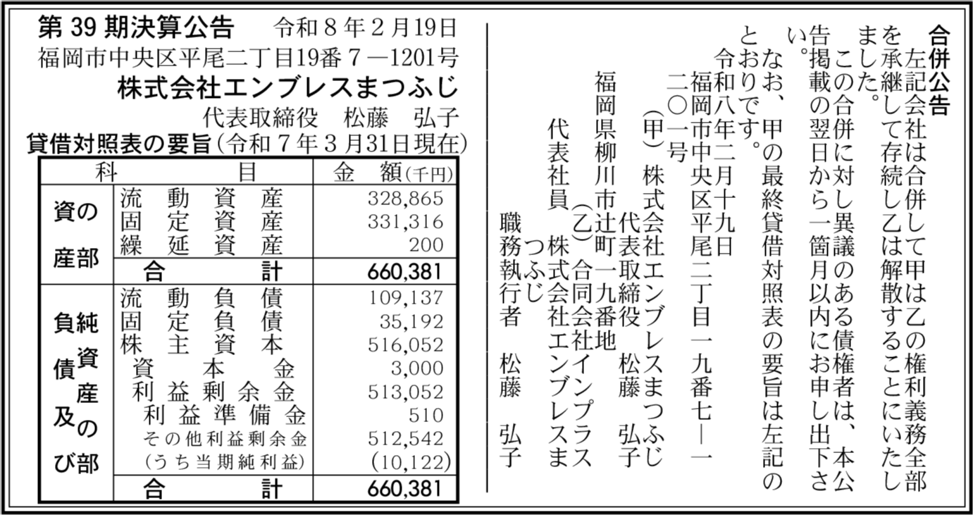 | 会社名 | 株式会社エンブレスまつふじ |