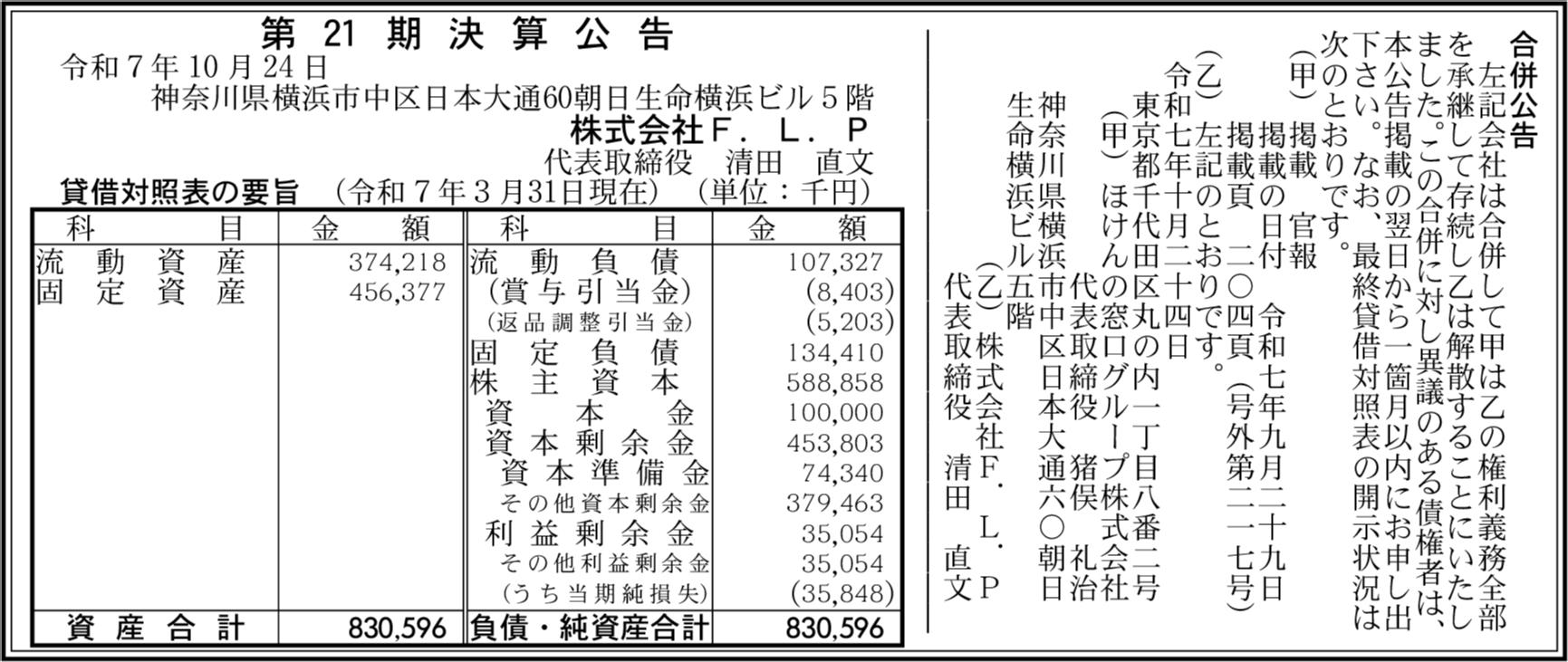 | 利益剰余金 | 3,505万4,000円 (▲50.56%) |