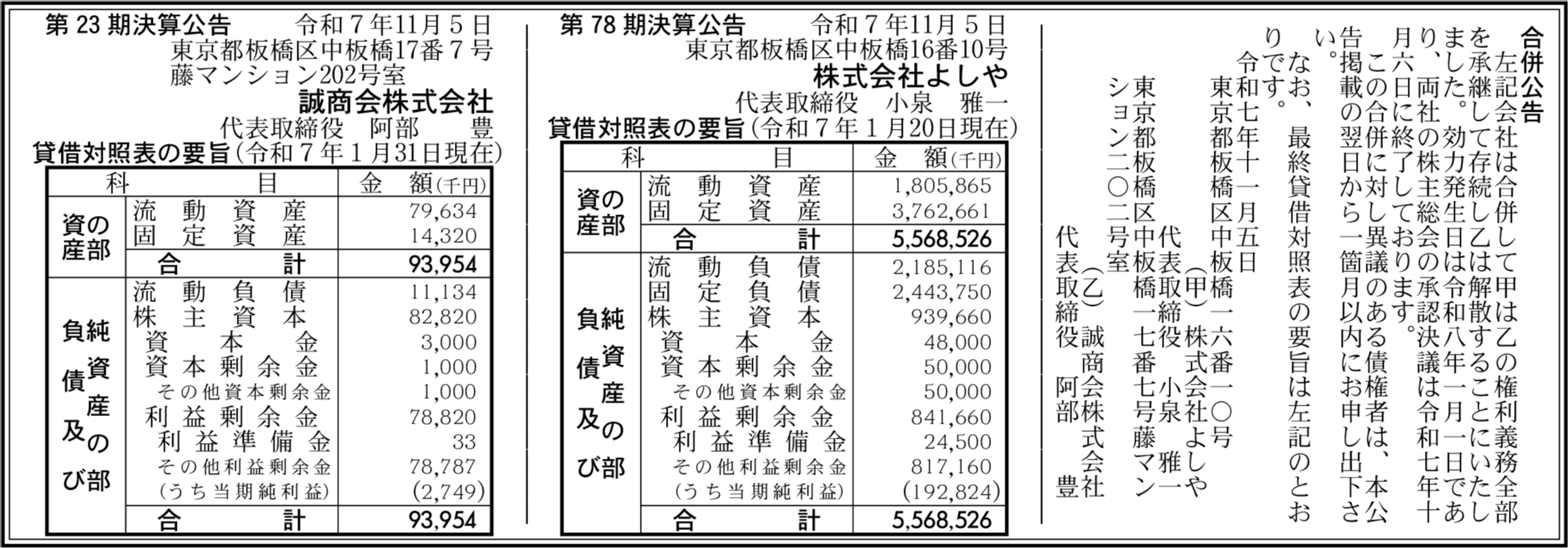 誠商会株式会社 東京都板橋区 【2025年1月期】 |