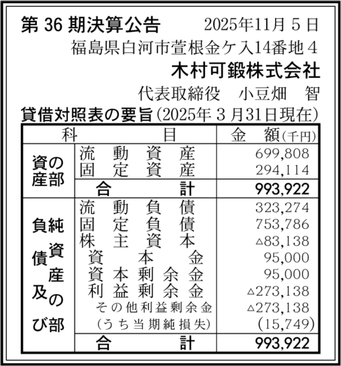 株式会社東北たまがわ 福島県白河市 【2025年3月期】 |