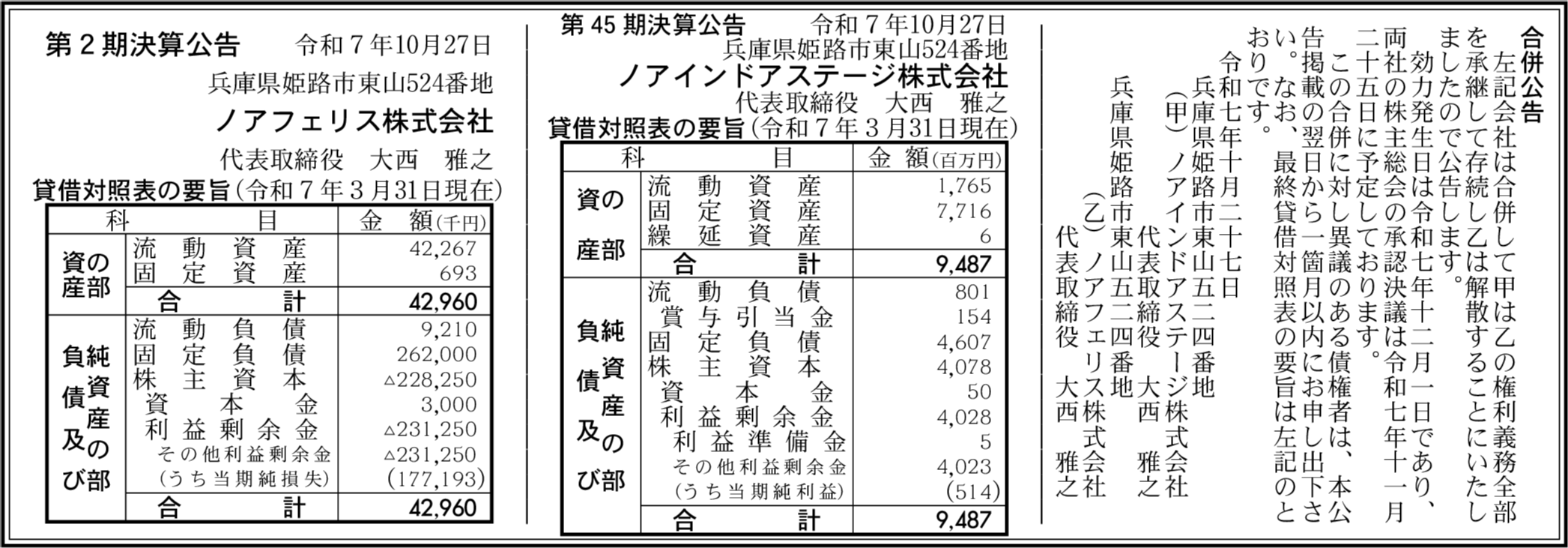 ノアフェリス株式会社 兵庫県姫路市 【2025年3月期】 |