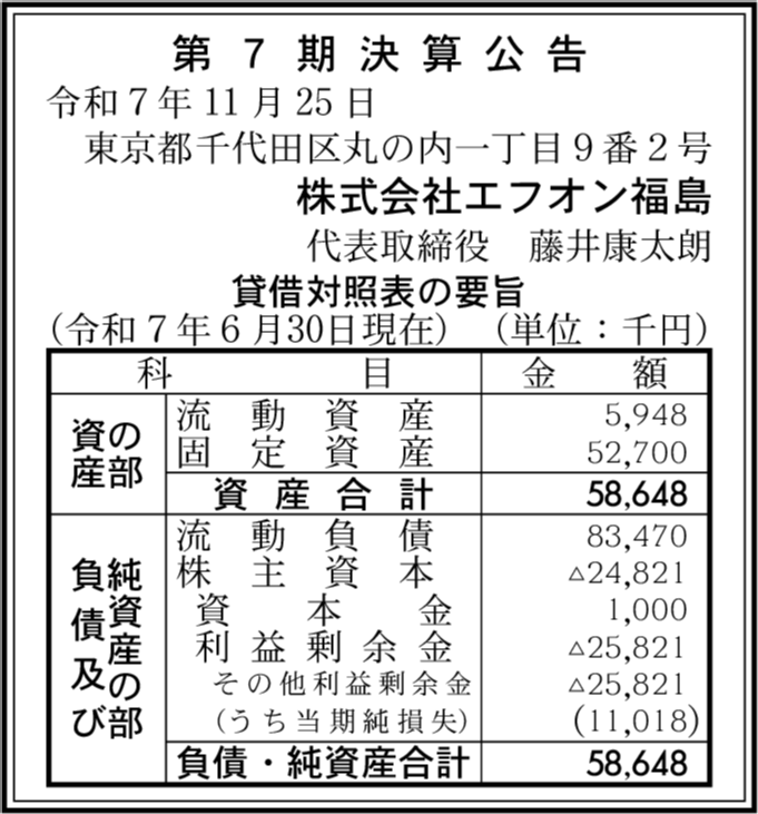 株式会社エフオン第七 東京都千代田区 【2025年6月期】 |