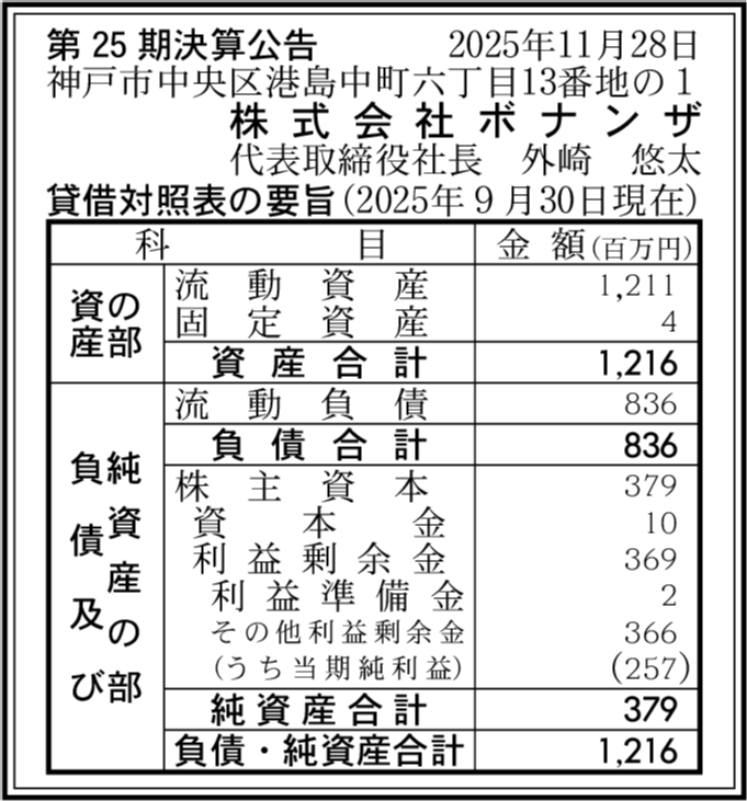 ピー・アンド・ジー株式会社 神戸市中央区 【2025年6月期】 |