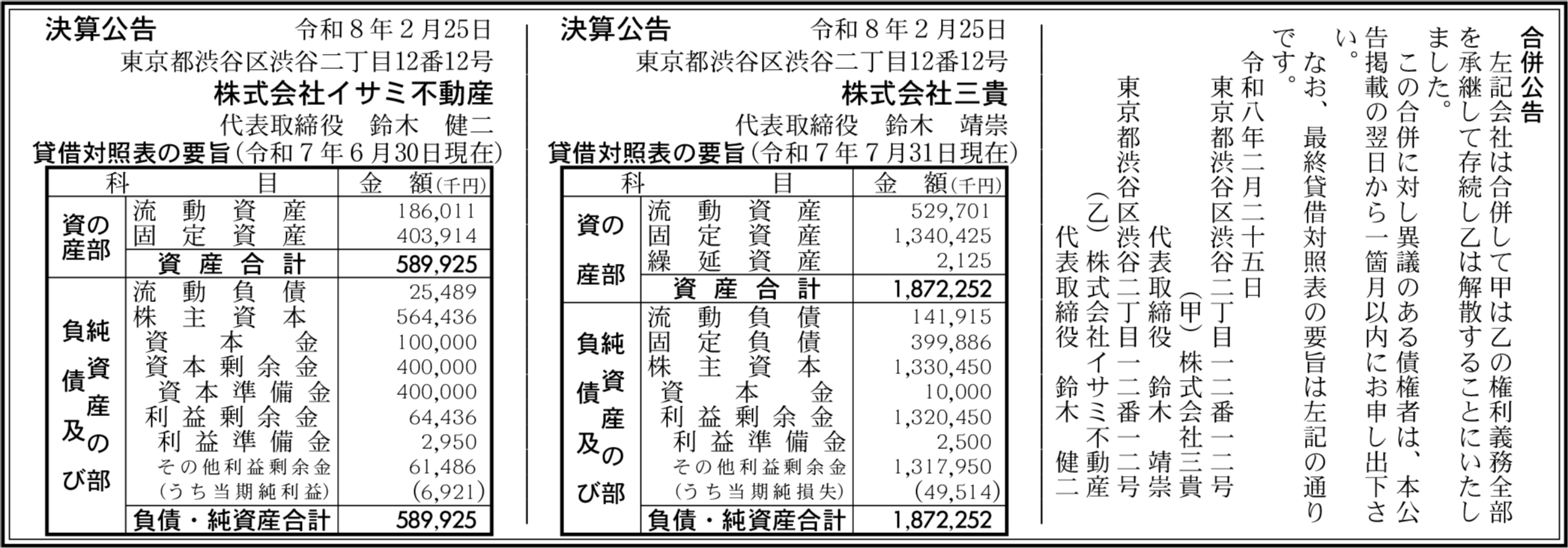 株式会社三貴 東京都渋谷区 【2025年7月期】 |