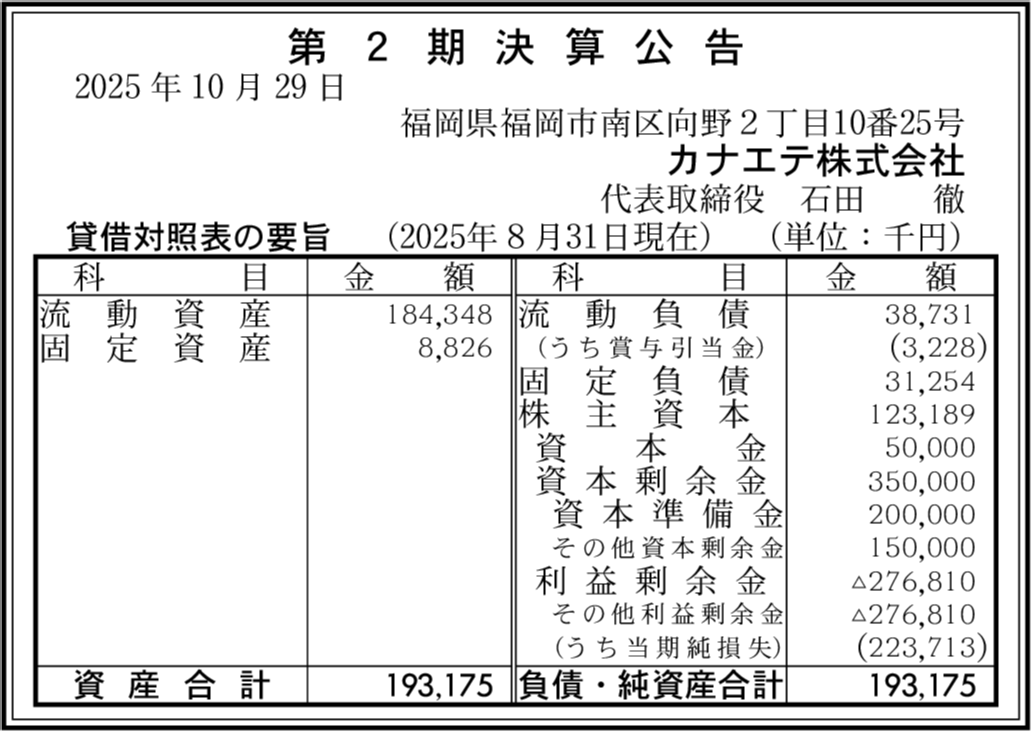 Kフーズ・リンク株式会社 福岡市南区 【2025年2月期】 |