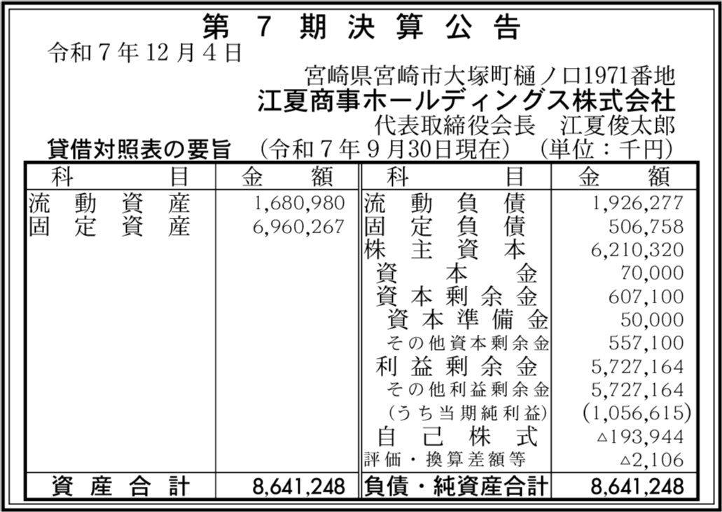 江夏産業株式会社閉鎖済み 宮崎県都城市花繰町8街区 【2020年3月期】 |