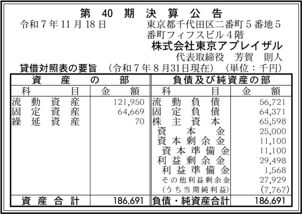 | 総資産 | 1億8,669万1,000円 (+4.04%) |