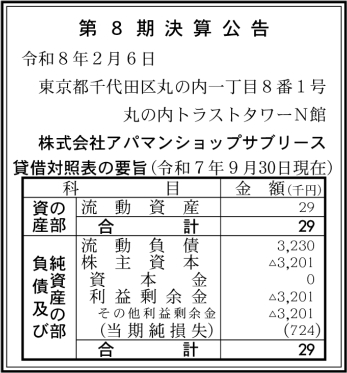 Apaman Leasing株式会社 東京都千代田区 【2025年9月期】 |