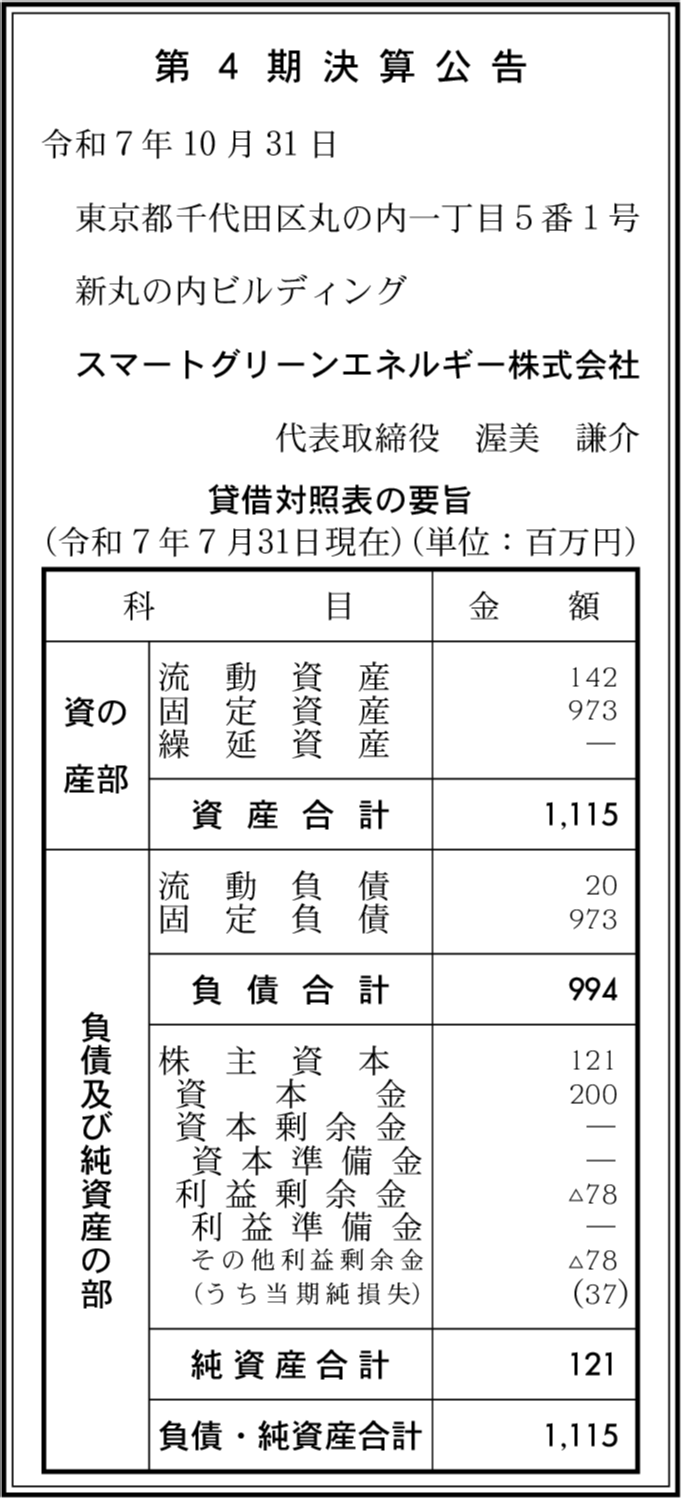 スマートグリーンエネルギー那須株式会社 栃木県那須郡那須町 【2025年7月期】 |