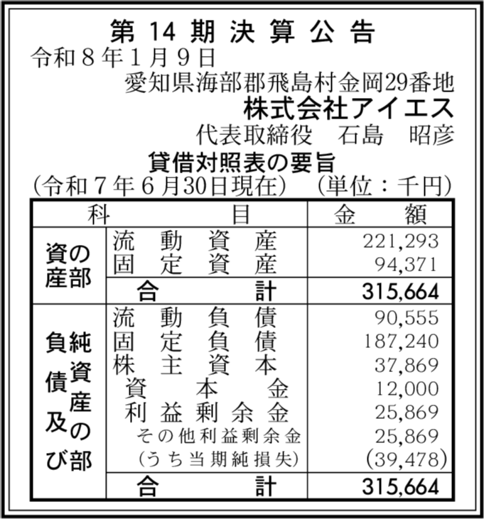 大地株式会社 愛知県海部郡飛島村 【2025年6月期】 |