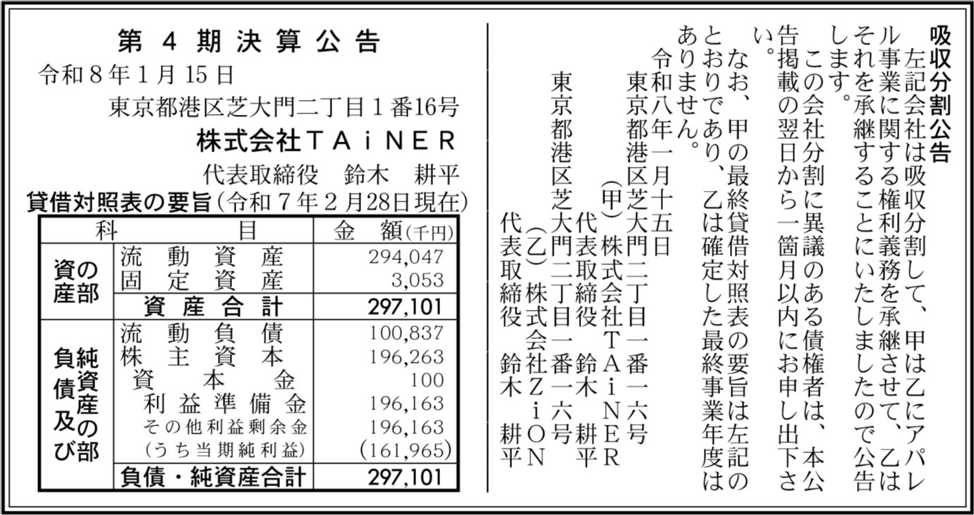 つながりAI株式会社 東京都港区 【2025年12月期】 |