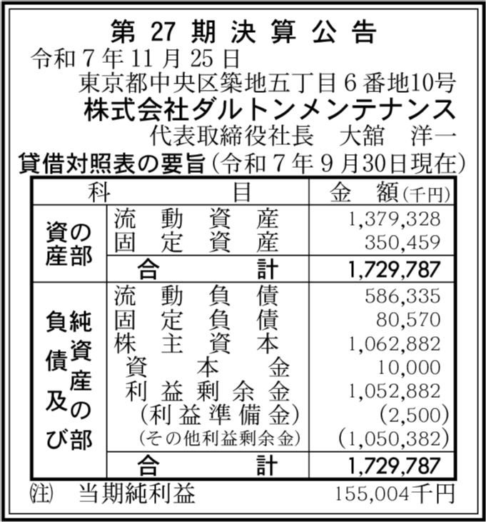 株式会社ダルトン 東京都中央区 【2024年9月期】 |