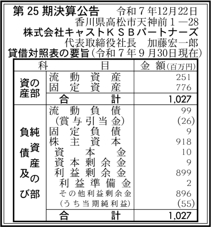 株式会社KSBマーケティング・セールス 香川県高松市 【2025年3月期】 |