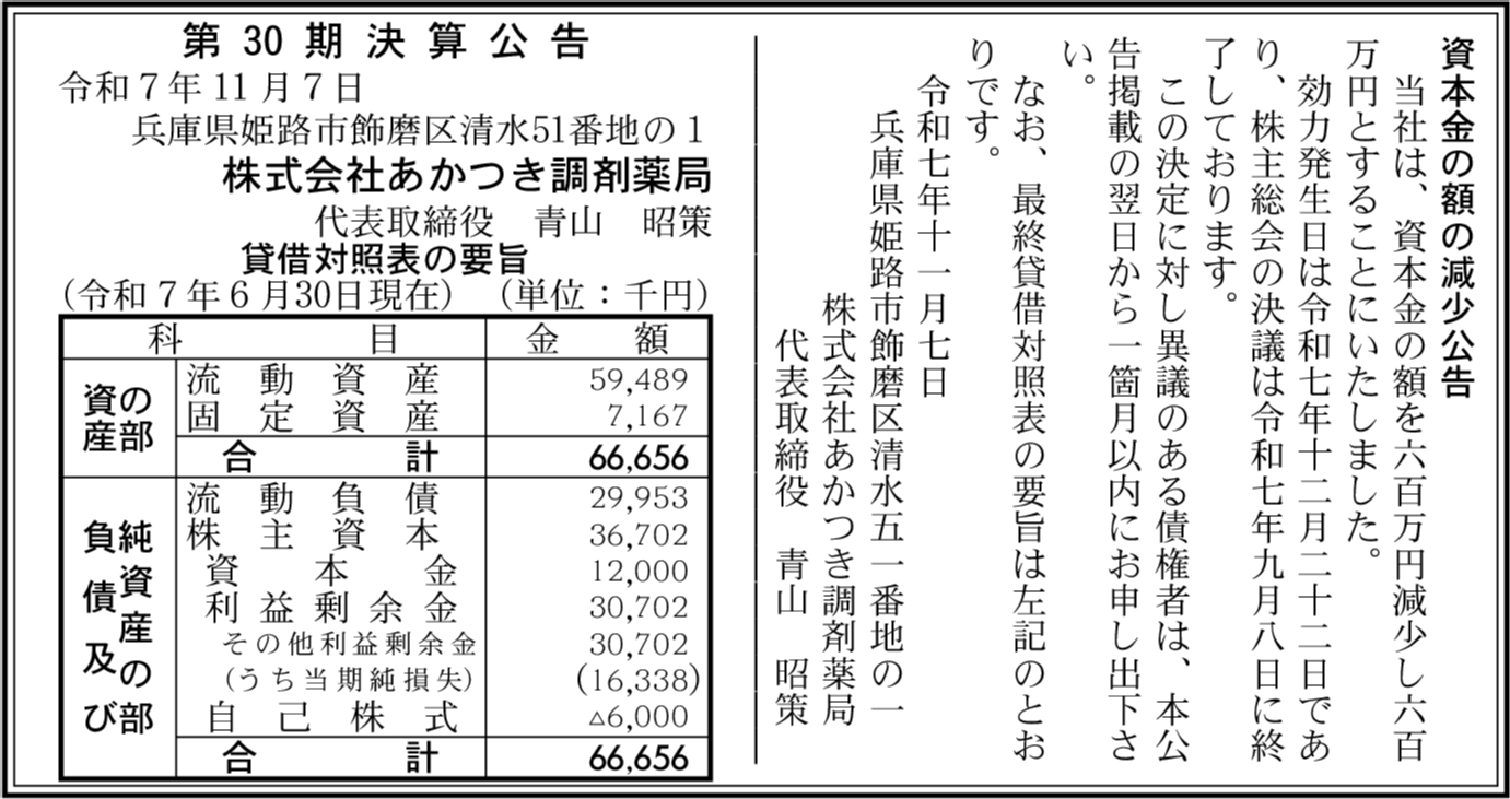 | 会社名 | 株式会社あかつき調剤薬局 |
