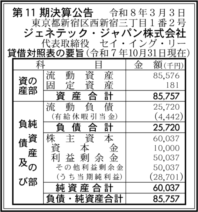 | 会社名 | ジェネテック・ジャパン株式会社 |
