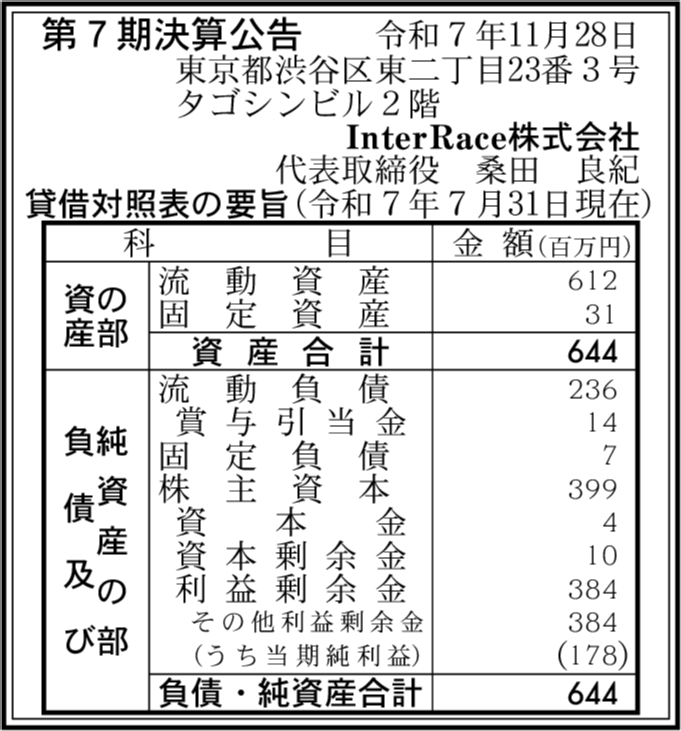 | 会社名 | InterRace株式会社 |