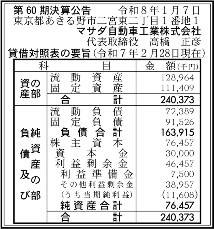 株式会社マサダ製作所 東京都あきる野市 【2025年2月期】 |