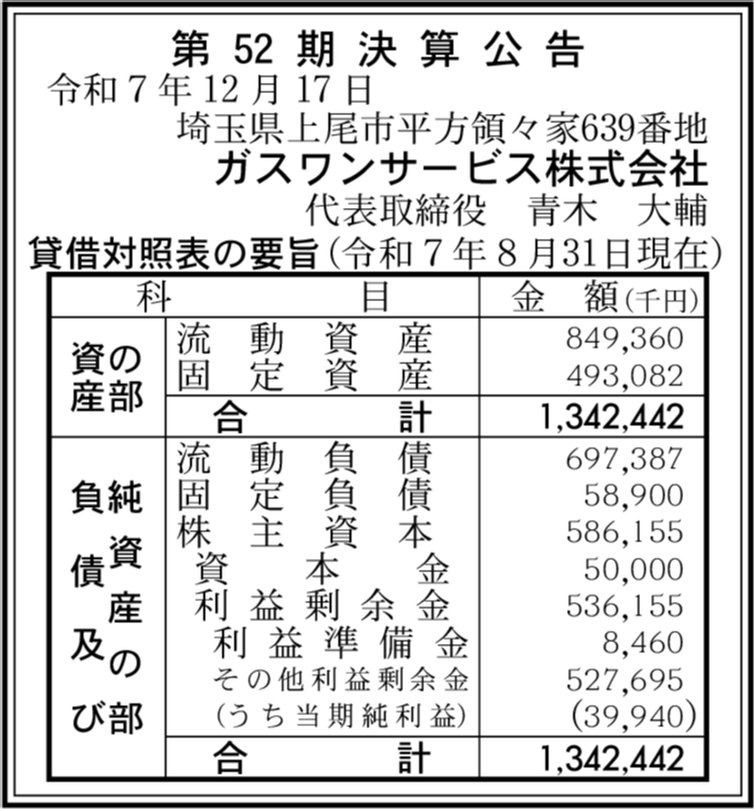 関東LPガス保安点検センター株式会社 埼玉県上尾市 【2024年8月期】 |