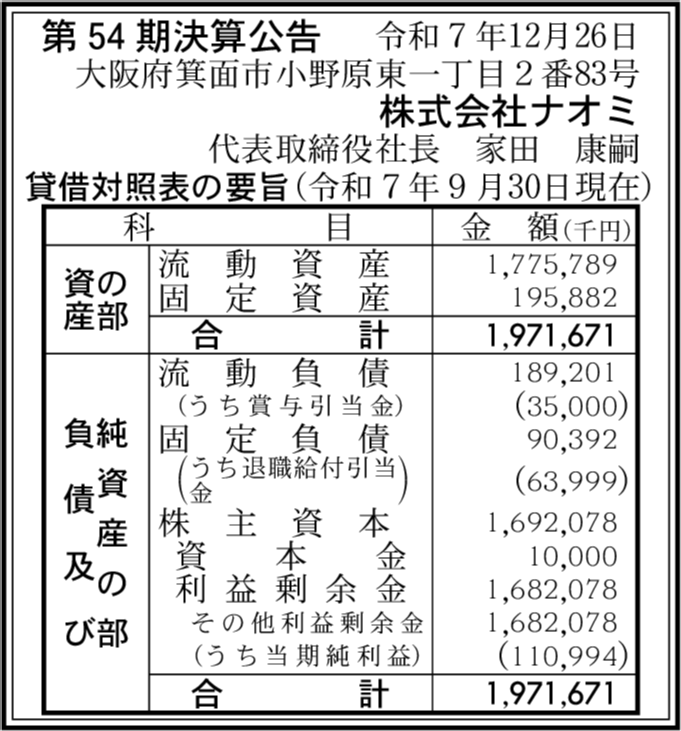 | 会社名 | 株式会社ナオミ |