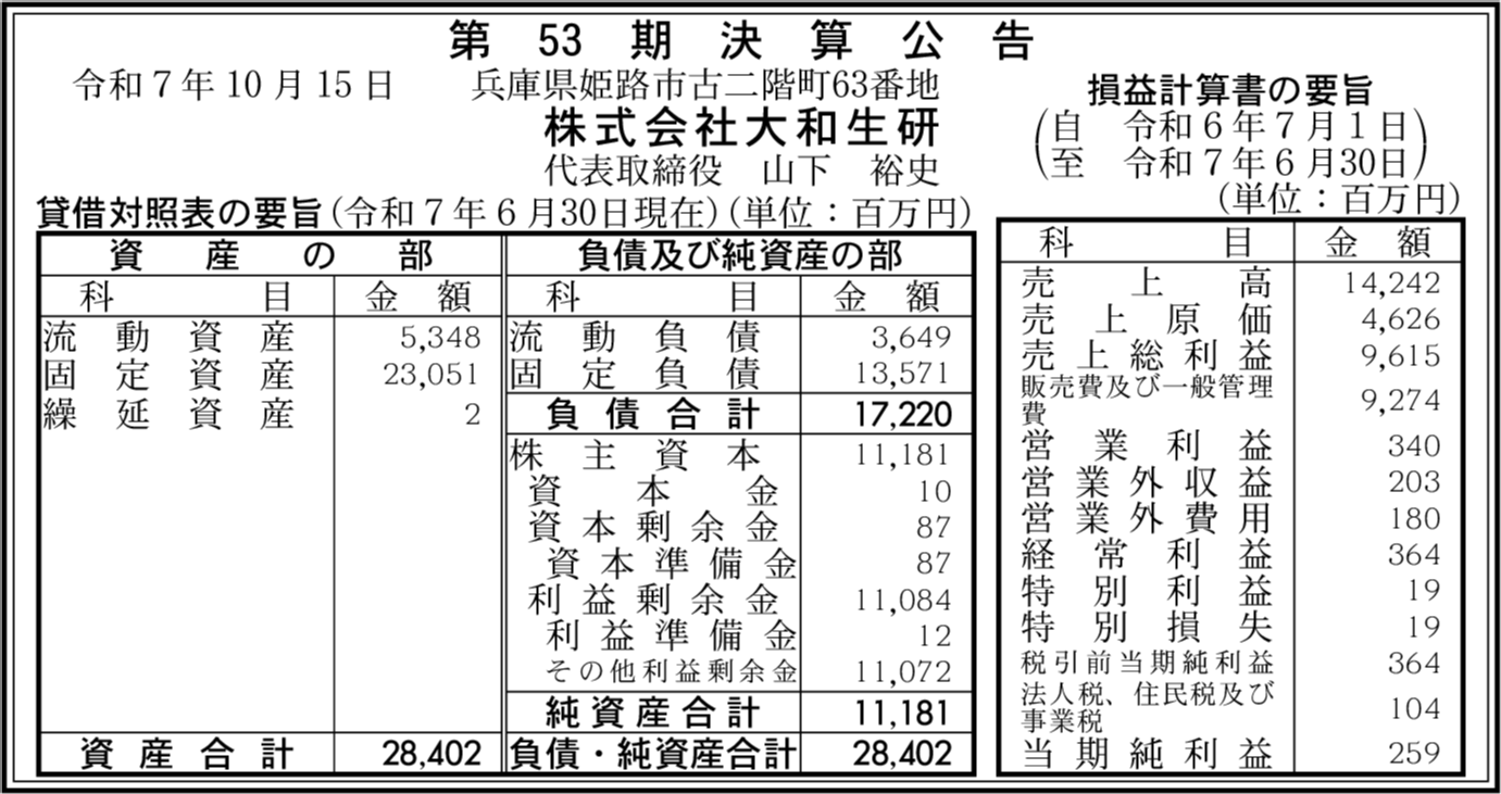 会社名 | 株式会社大和生研 |
