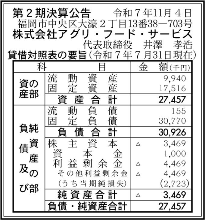 | 会社名 | 株式会社アグリ・フード・サービス |