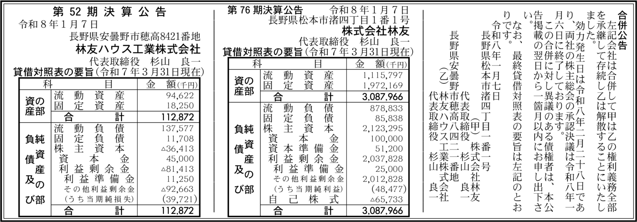 林友ハウス工業株式会社 長野県安曇野市 【2025年3月期】 |