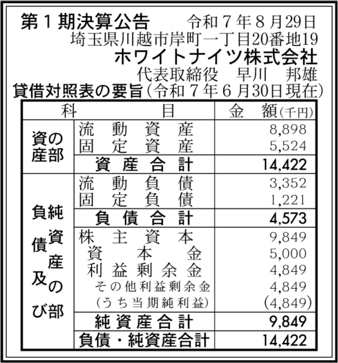 会社名 | ホワイトナイツ株式会社 |