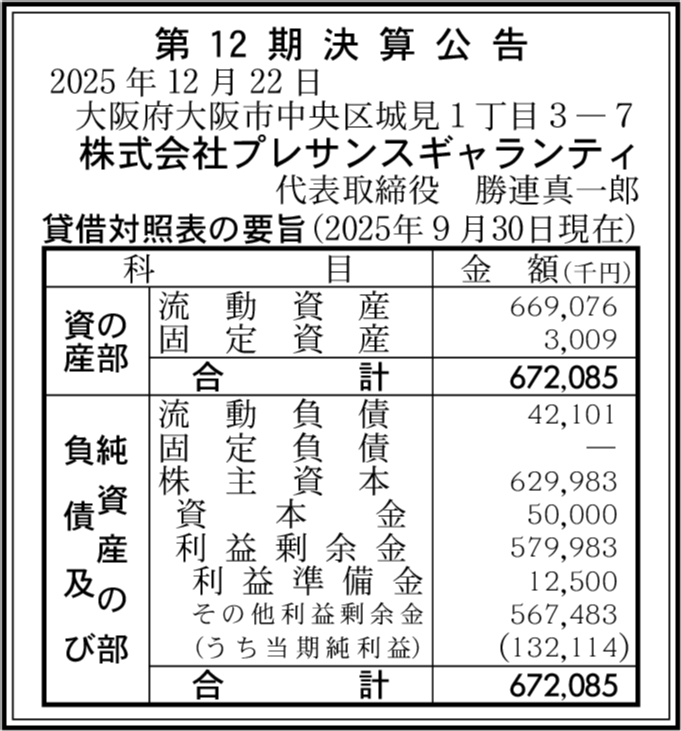 株式会社プレサンスコミュニティ 大阪府大阪市中央区 【2025年9月期】 |