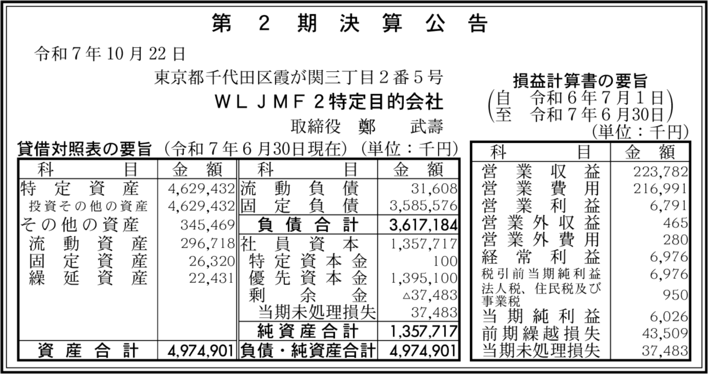 | 会社名 | WLJMF2特定目的会社 |