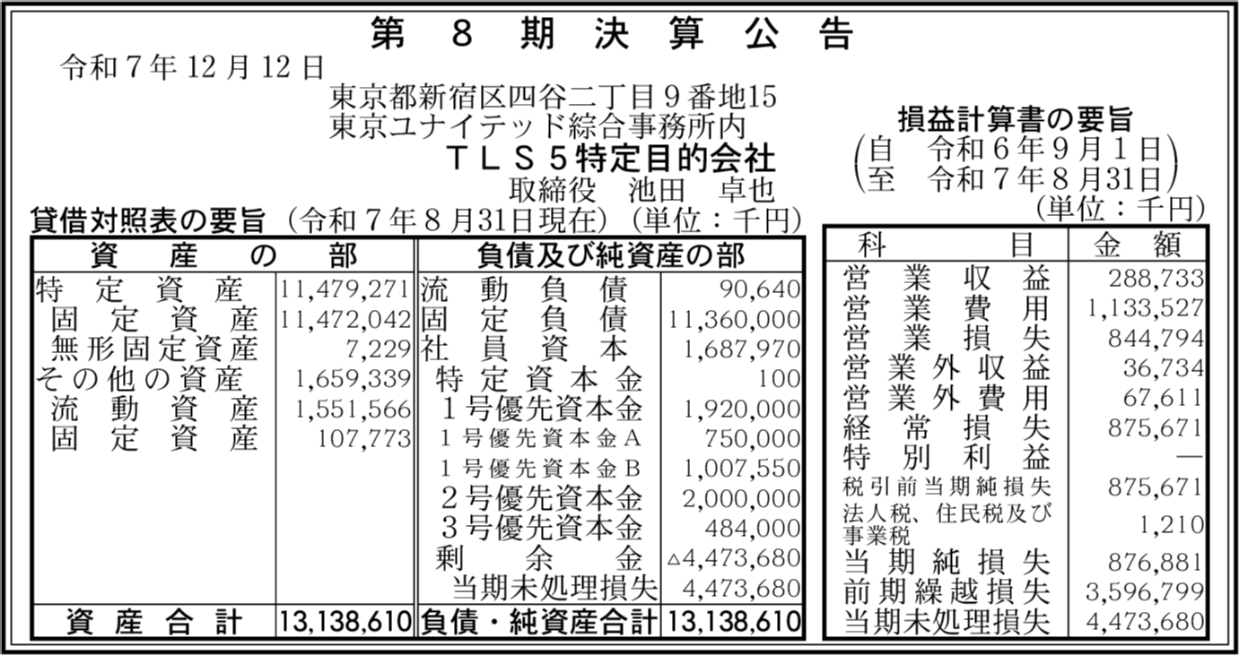 特定目的会社SSG4 東京都新宿区 【2025年2月期】 |