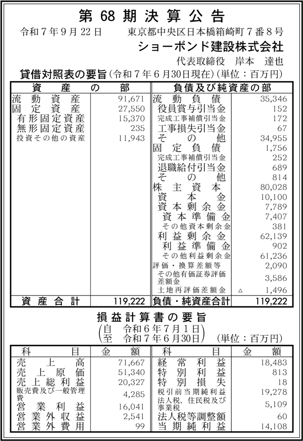 SHO-BOND&MITインフラメンテナンス株式会社 東京都中央区 【2025年6月期】 |
