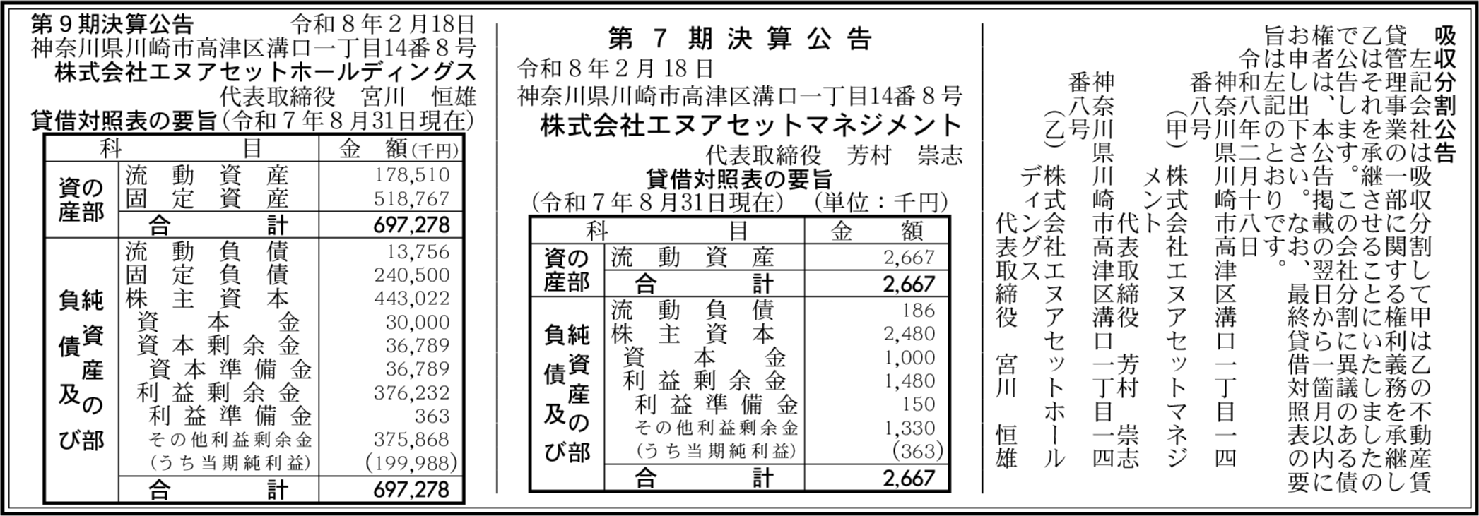 株式会社エヌアセットマネジメント 神奈川県川崎市高津区 【2025年8月期】 |