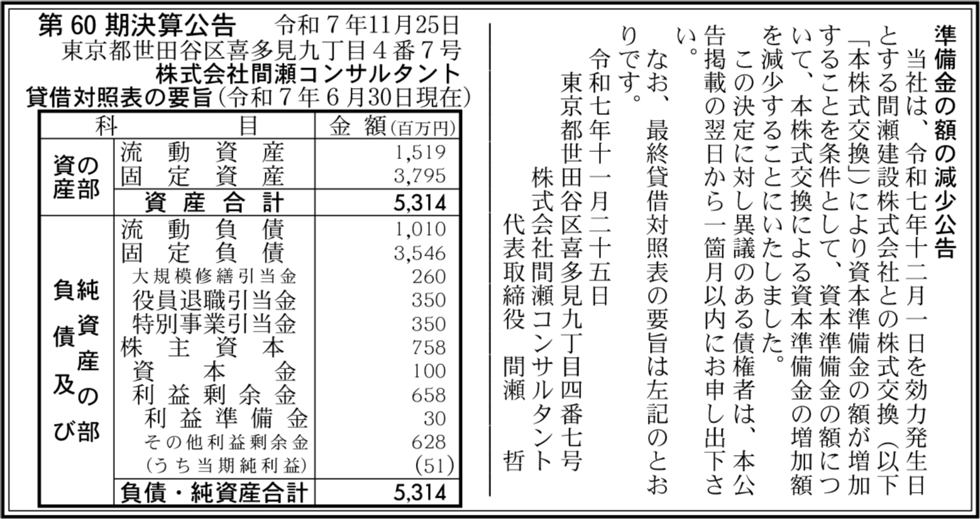 | 会社名 | 株式会社間瀬コンサルタント |