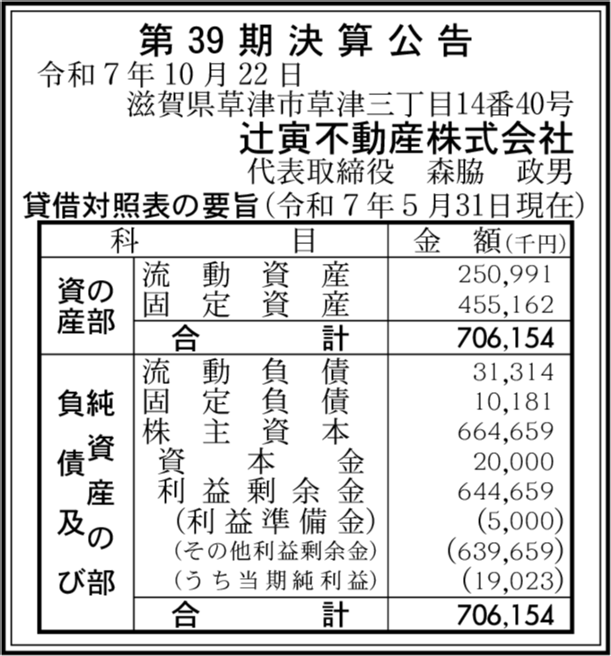 | 総資産 | 7億615万4,000円 (▲0.15%) |