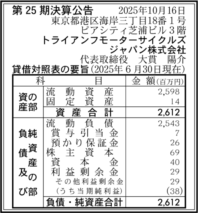 会社名 | トライアンフモーターサイクルズジャパン株式会社 |