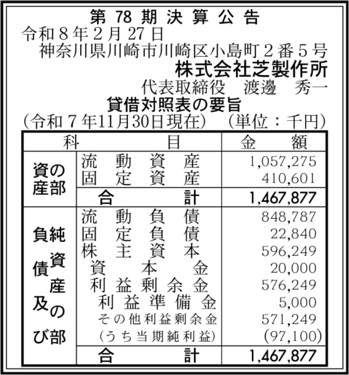| 会社名 | 株式会社芝製作所 |