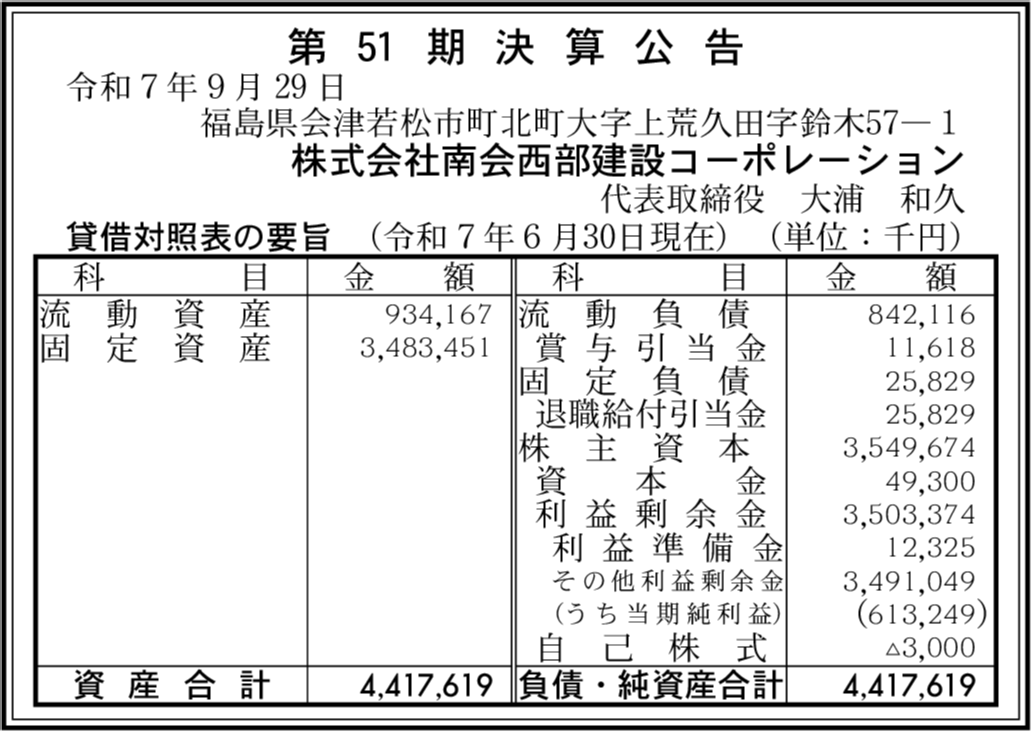 | 会社名 | 株式会社南会西部建設コーポレーション |