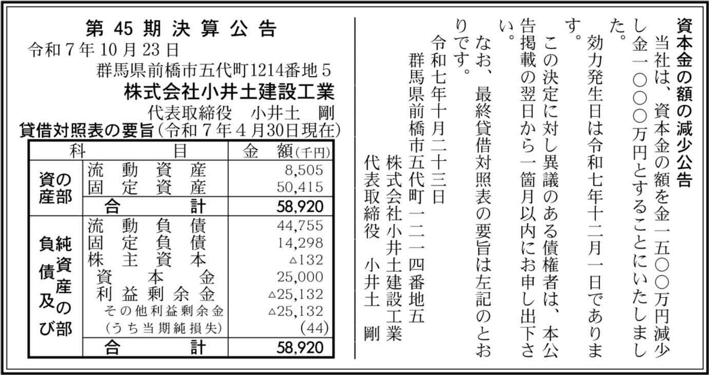 都市開発設計株式会社 群馬県前橋市 【2025年5月期】 |