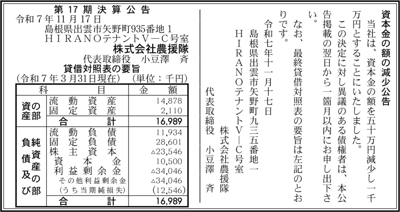 株式会社JAアグリ島根 島根県出雲市 【2025年3月期】 |