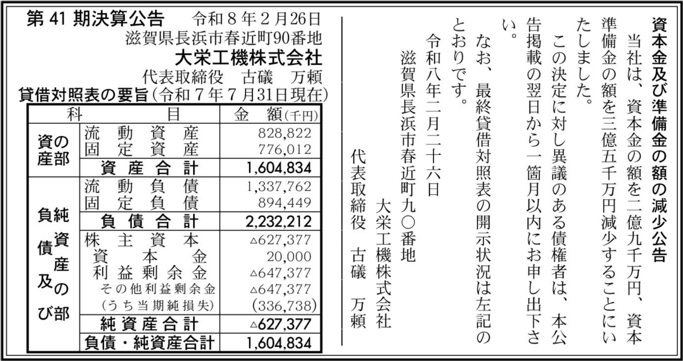 | 会社名 | 大栄工機株式会社 |