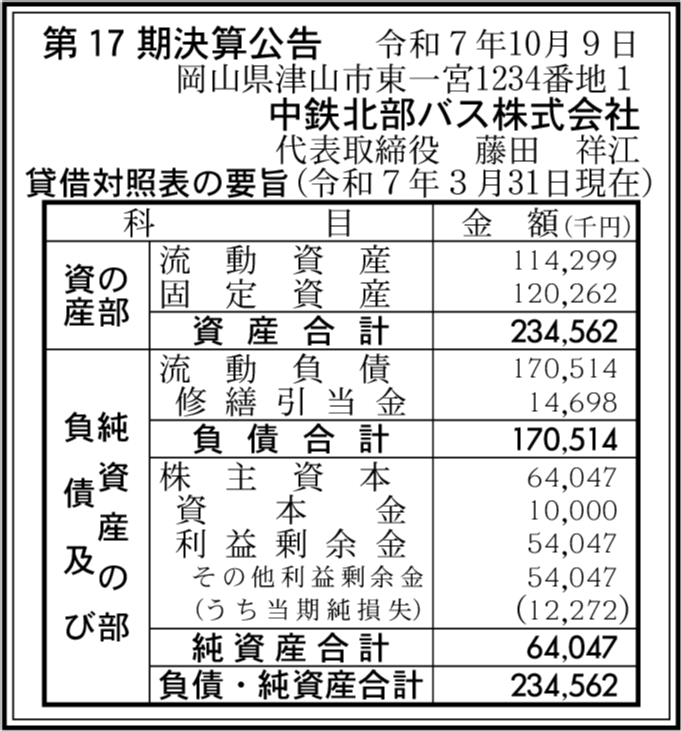 中鉄バス株式会社 岡山市北区 【2025年3月期】 |